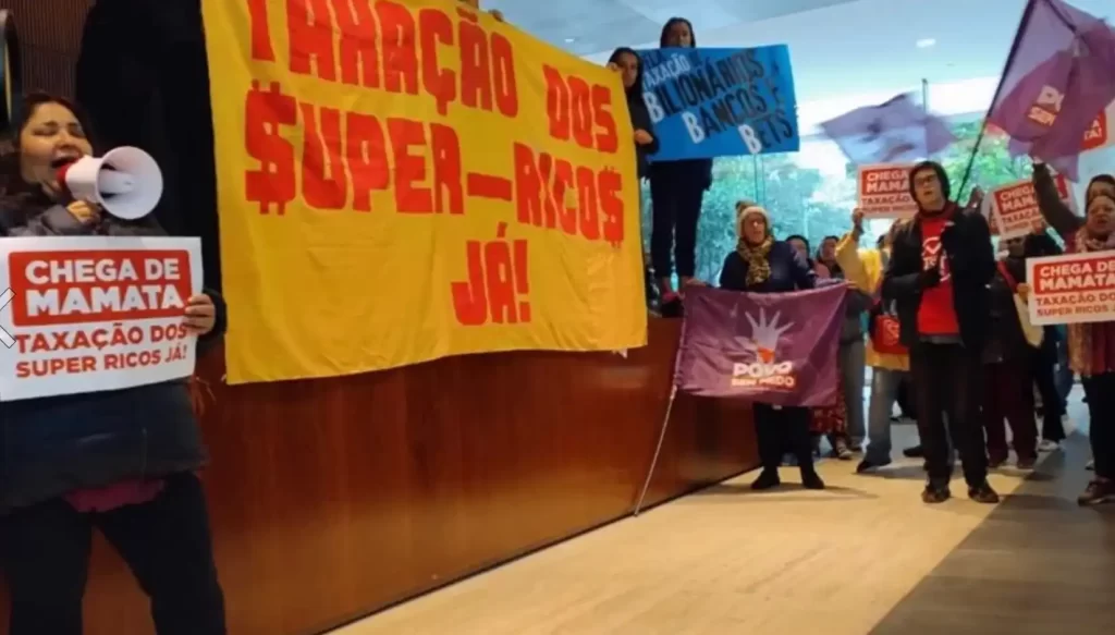 Com cartazes e faixas com dizeres como “O povo não vai pagar a conta” e “Taxação dos super-ricos já”, aproximadamente 300 manifestantes protestaram contra o que consideram uma injustiça na estrutura tributária do país. O grupo defende a taxação de grandes fortunas e a isenção do imposto de renda para pessoas com renda mensal de até R$ 5 mil.